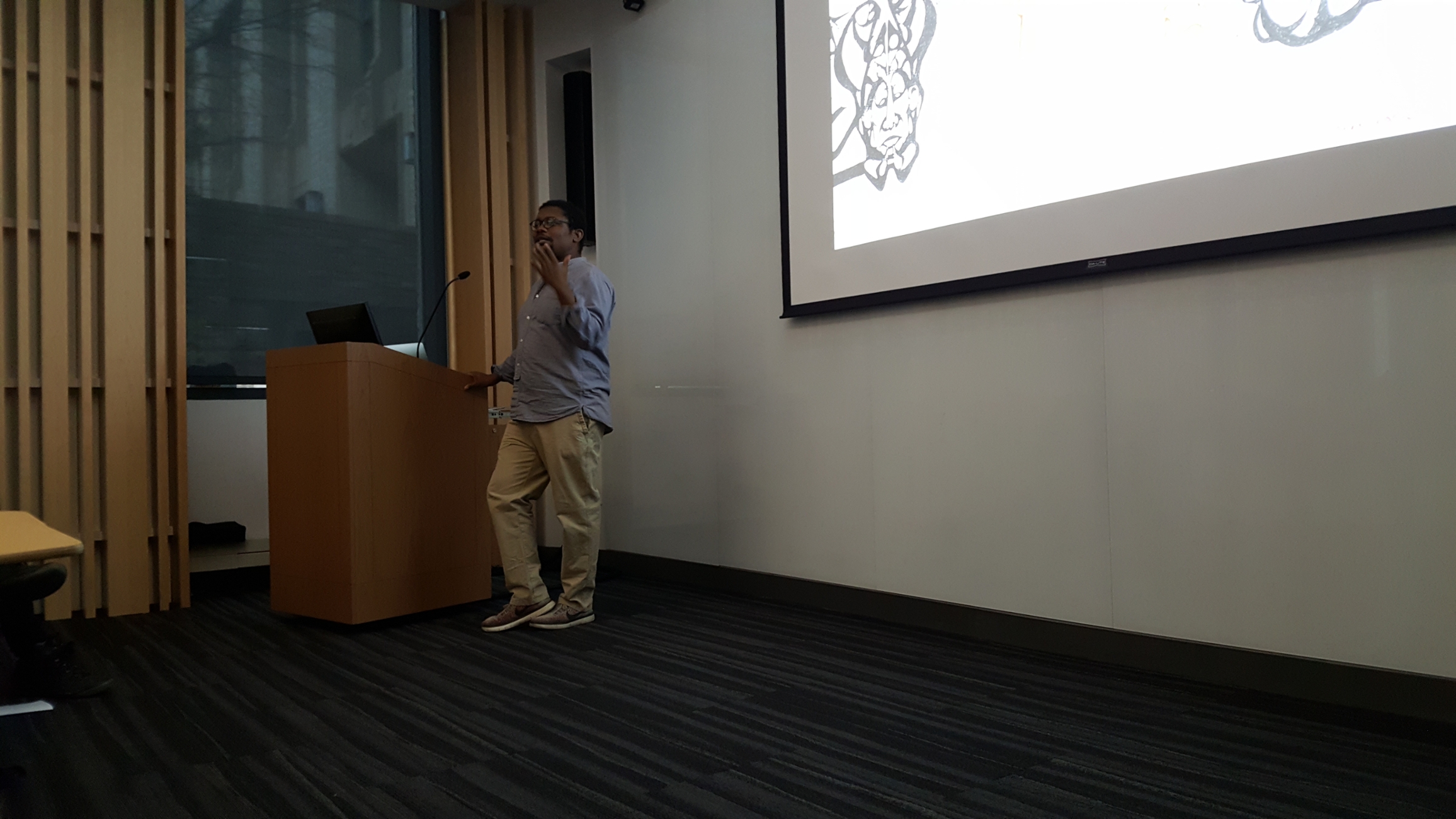 Visiting scholar Athi Joja delivered his paper "Dumile and the Sketches of Jazz." Exploring how jazz impacted the visual language of the iconic South African artist Dumile Feni, Joja presented an introductory overview of Feni’s unique oeuvre and the intricate ways in which jazz both constitutes much of its subject matter and, more importantly, informs its expressive grammar. Joja argued that in spite of Dumile’s noted stylistic and formal shifts throughout his career, jazz remained the most consistently present idiom in his work, shaping his well-known beautiful line.
